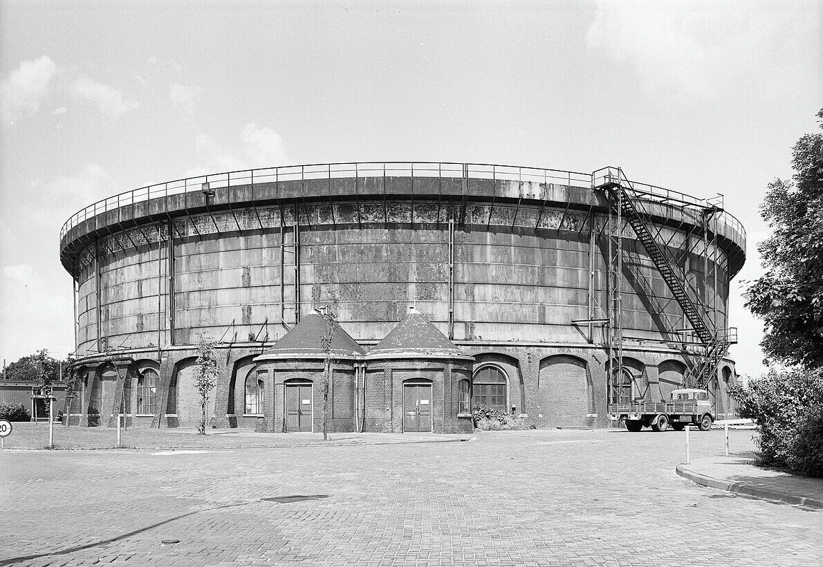 Construit en 1902, le Gashouder était à l’origine un gazomètre, servant à stocker le gaz de houille utilisé pour l’éclairage de la ville d’Amsterdam. Abandonné dans les années 1960, ce bâtiment industriel a été réhabilité dans les années 1990 pour devenir un espace culturel polyvalent.